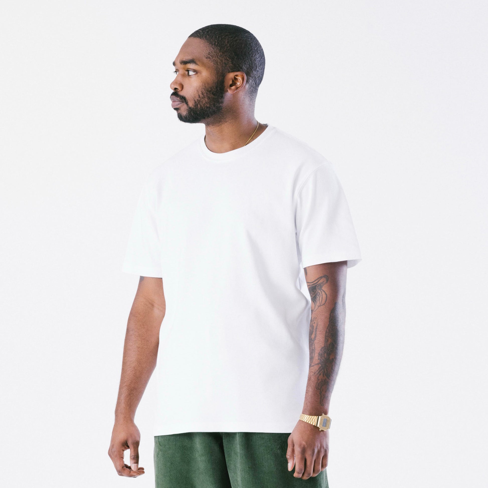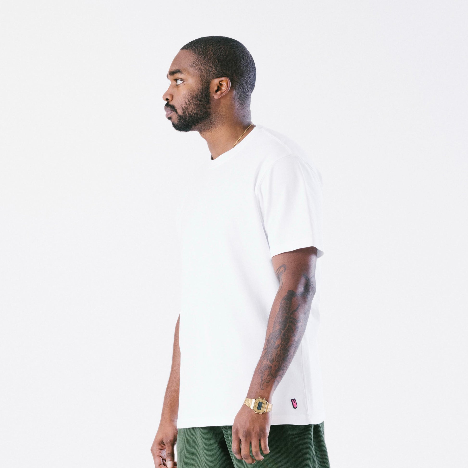 Our Lux Tee is far from minimal, with a luxurious hand feel and drape that is unparalleled in the industry. Made with thick, plush 8oz cotton interlock fabric for max quality and comfort—and nothing more.