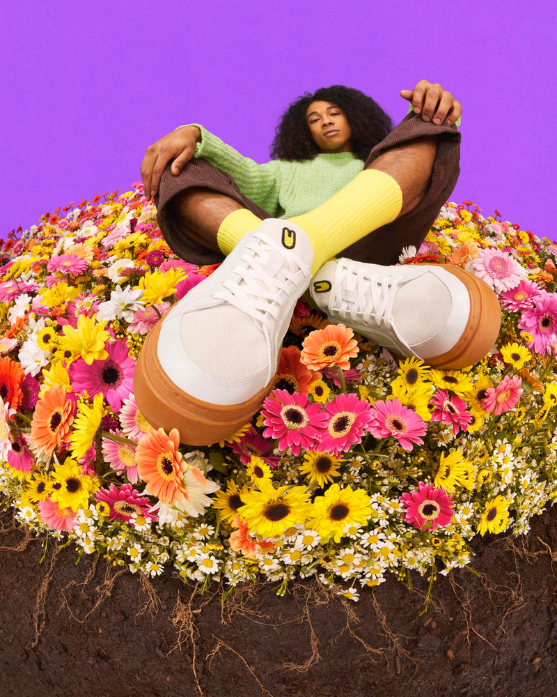 All plants, no plastic sneakers made to return to the earth and regenerate into something new.